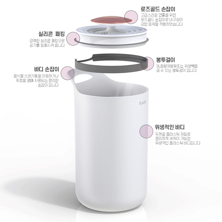 Product components : Food waste bin body, plastic hanger, vacuum lid