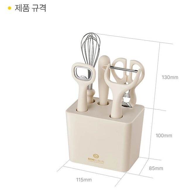 Composition : chopping knife / opener / scissors / fruit knife / whipping machine / storage box