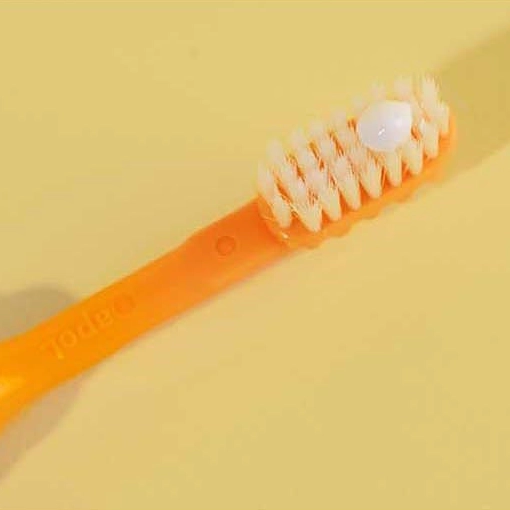 1. After applying a small amount of toothpaste to a cloth or toothbrush, gently lift the upper lip to expose the teeth.