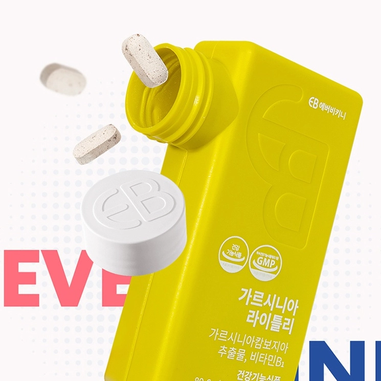 Garcinia Cambogia extract (from India), Garcinia Cambogia extract (from India), Vitamin B1 hydrochloride, microcrystalline cellulose, dried brewer's yeast (from Lithuania), silicon dioxide, green tea extract (from China), L-carnitine, magnesium stearate, multi-mineral mix, multi-vitamin mix, kimchi lactic acid bacteria (L. plantarum).