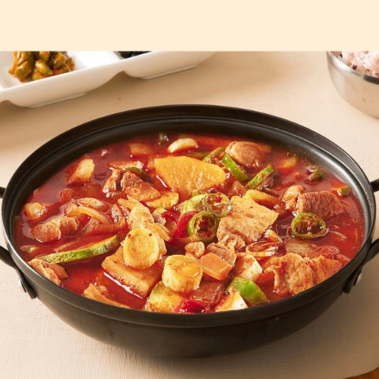 Ingredients | 3.5 tablespoons (45g) of Joseon gochujang, 150g of pork, 2 cups of water, a handful of oyster mushrooms, 1/4 potato, 1/6 zucchini, 1/8 onion, 1/2 tablespoon minced garlic