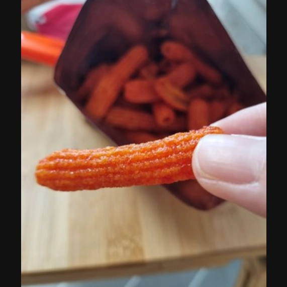 1. When you bite into the Sindang-dong Tteokbokki snack, you get a crispy texture and a spicy flavor that spreads instantly, tasting just like real tteokbokki.