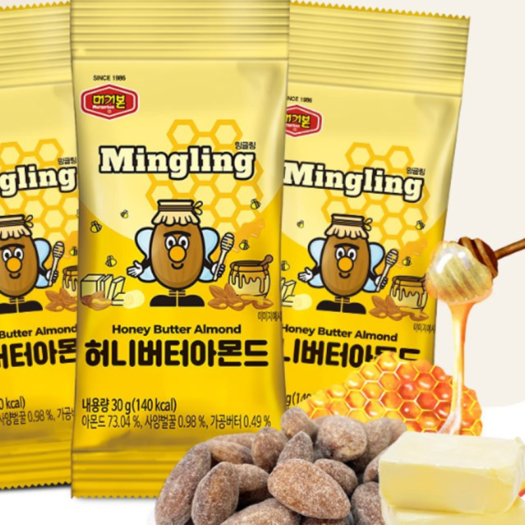 Almond (made in the United States), sugar, starch syrup, sweet seasoning-2 [sweet taste powder-2 {processed salt (made in the United States), butter mixed powder (made in Australia), honey powder {speck honey (made in Korea), aspartame (sweeteners,