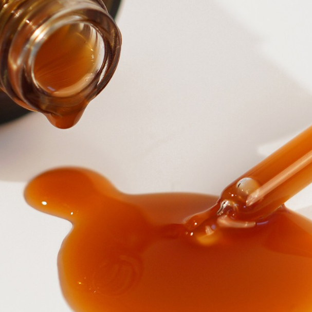 A drop of green tea fresh serum brewed deeply from green tea leaves