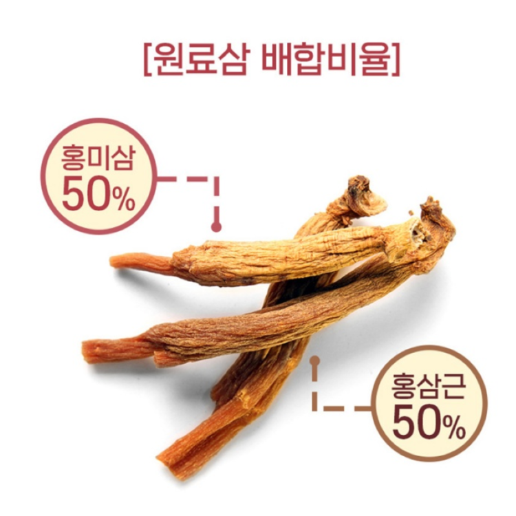 Red ginseng concentrate (6-year, domestic / solids content 60%, total ginsenosides Rg1, Rb1, and Rg3 7mg/g, raw ginseng blending ratio: 50% red ginseng roots, 50% red ginseng fleshy roots) 1.4%, purified water, date syrup, fructooligosaccharides, plant mixed concentrate (purified water, chicory root/domestic, jujube fruit/domestic, peony/domestic, prepared rehmannia, yellow ginger, astragalus root, angelica, ligusticum), palatinose, prepared rehmannia concentrate (rehmannia/domestic), plant mixed powder (mugwort, wormwood, korean wormwood, goji berry, fenugreek seed), citric acid, complex golden extract, sodium citrate, acacia gum, guarana extract powder.