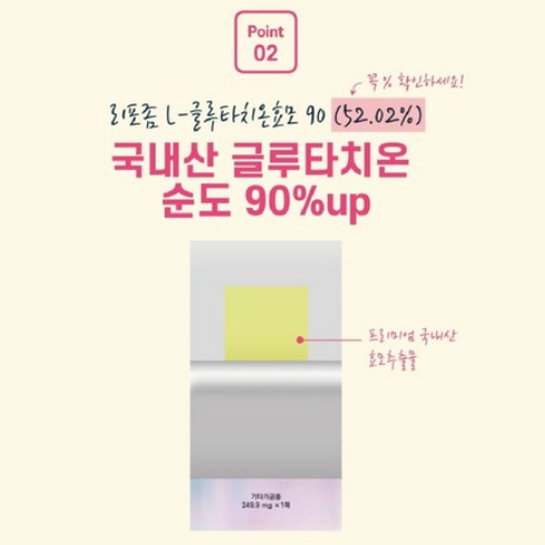 Mixed formulation [Liposome L-Glutathione Yeast 90 (yeast extract, lecithin, citric acid) domestic] 52.02%, Vitamin C, Pullulan, Hyaluronic acid, Water-soluble milk thistle, Polysorbate 20, Natural flavoring (lemon-lime flavor), Enzyme-treated stevia, Glycerin, Xylitol, Vitamin E mixed formulation, L-Cysteine hydrochloride, Peppermint extract powder (solid content 1.5%), Gardenia yellow pigment, Hydrolyzed elastin, Low-molecular fish collagen, Anhydrous citric acid.