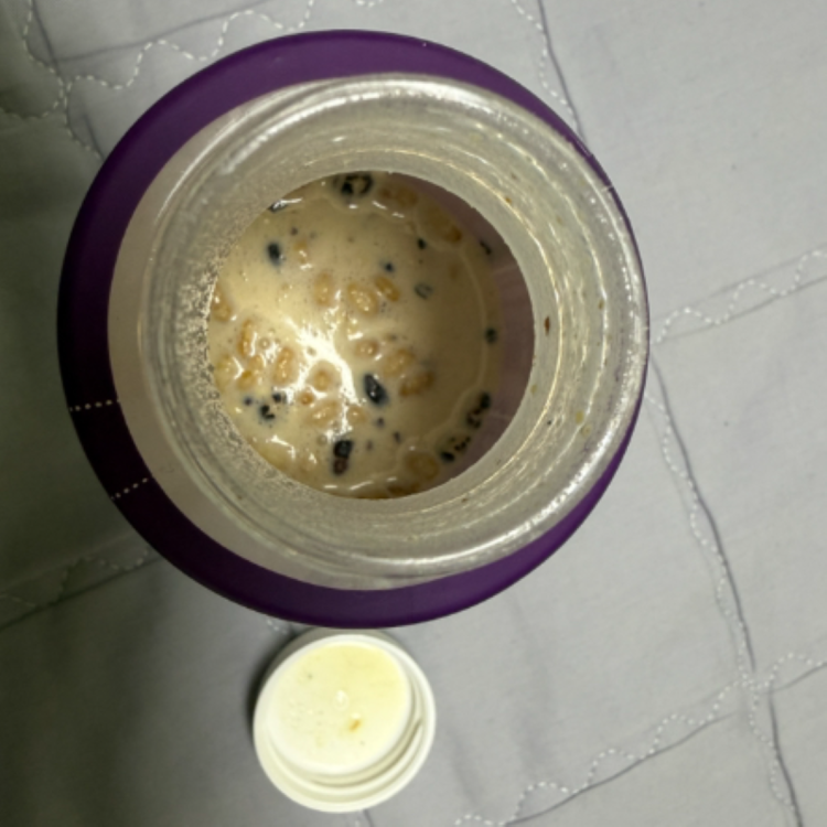 • Add 160ml of milk or soy milk and shake well to mix the contents thoroughly.