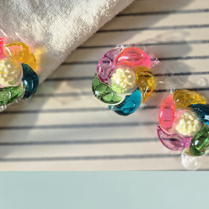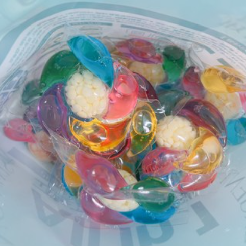 A. The capsule detergent is made with a water-soluble film, which is affected by humidity. High humidity may cause the film to dissolve, causing the capsules to stick together and potentially burst. *When storing, please close the pouch tightly or keep it in a sealed container. Additionally, it is packaged in a child-proof manner to prevent safety accidents, so please ensure the pouch is closed after use!