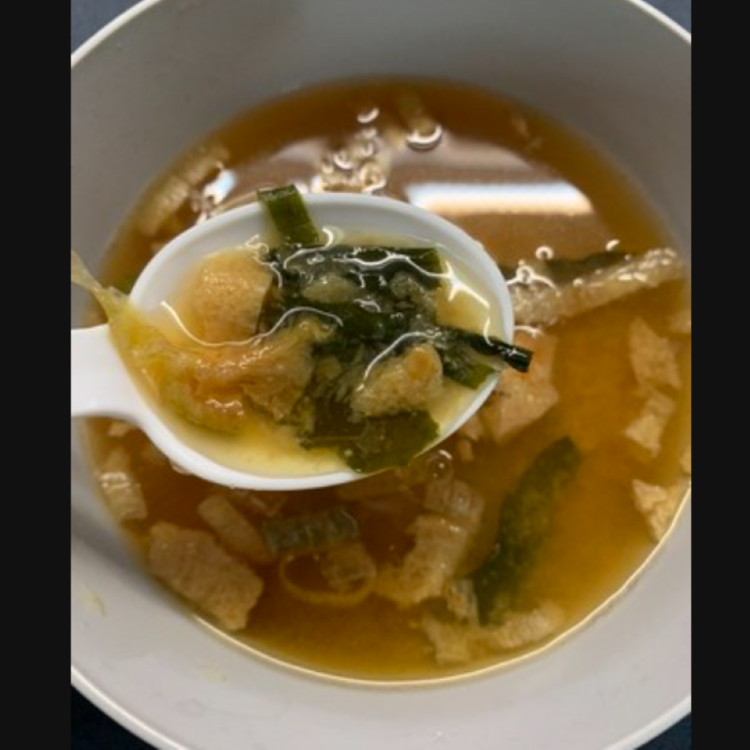 Miso (Japanese soybeans, rice, refined salt, alcohol), green onion (from China), corn syrup, dashi no moto (from Japan), tofu, modified starch, rice flour, katsuobushi extract, L-glutamic acid sodium (flavor enhancer), anchovy extract concentrate, dried seaweed, synthetic flavoring (katsuobushi flavor), flavor enhancer, kelp powder, refined salt, oleoresin rosemary