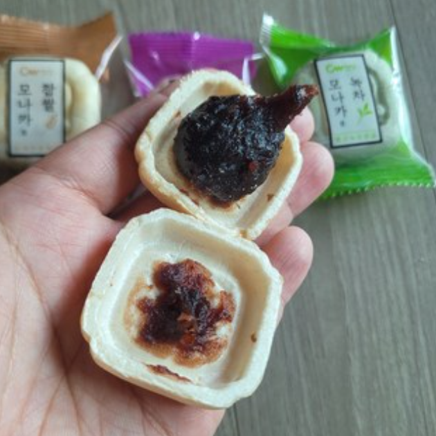 3. Glutinous Rice Monaka: Made with red bean paste containing chewy Korean glutinous rice powder.