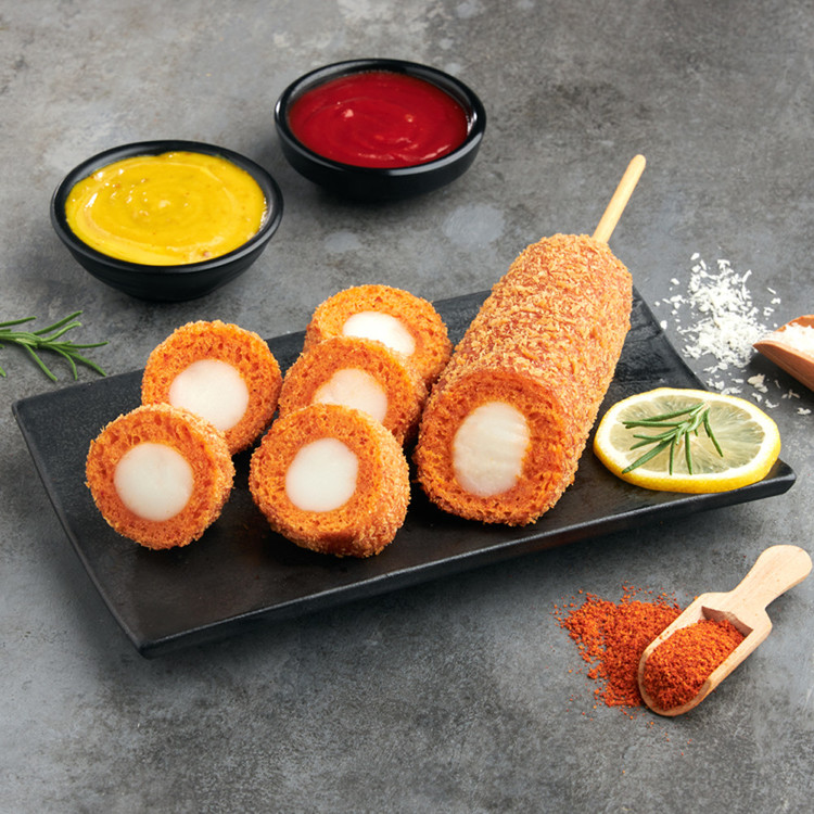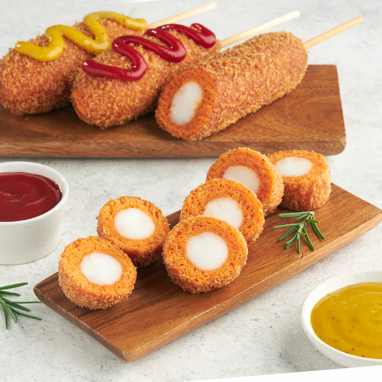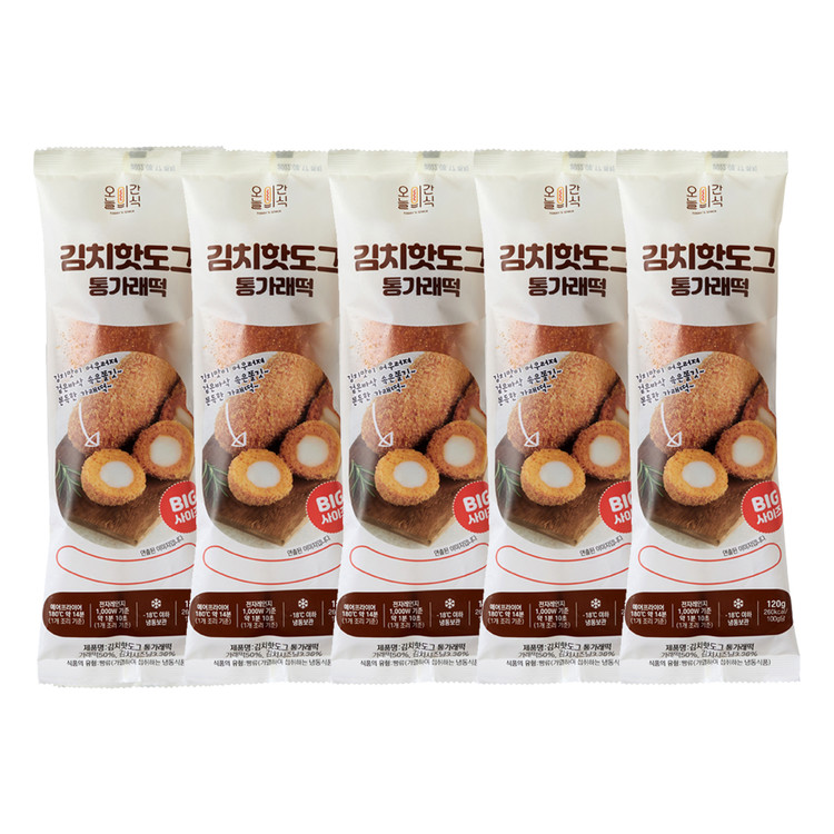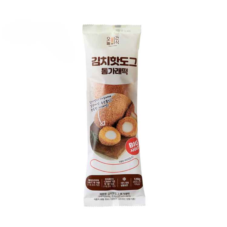 Ingredient | Glutinous rice hot dog mix [wheat flour (made in the U.S., Australian), sugar, mixed preparation (tapioca modified starch, maltodextrin), acidity regulator, glutinous rice powder (rice 93.8% (domestic), modified starch (Thailand), salt (domestic), flour), pork hot dog sausage 45.45%, 85.17% pork (partial use of fat/domestic, foreign (US, Germany, Spain, etc.), corn starch (corn: foreign (Russia, Serbia, Hungary, etc.), refined salt (domestic), sodium L-glutamate (flavor enhancer), collagen casing], German bread flour, soybean oil, kimchi seasoning, egg white liquid |